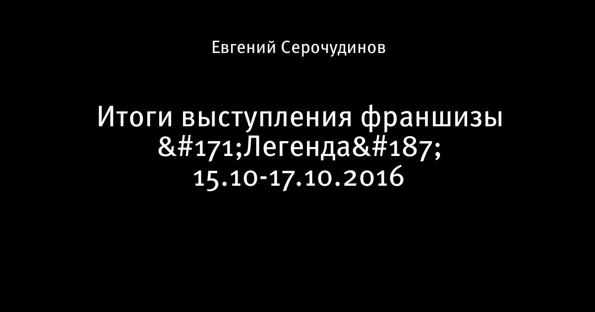 Итоги выступления франшизы «Легенда» 15.10-17.10.2016
