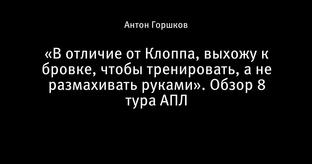 «В отличие от Клоппа, выхожу к бровке, чтобы тренировать, а не размахивать руками». Обзор 8 тура АПЛ
