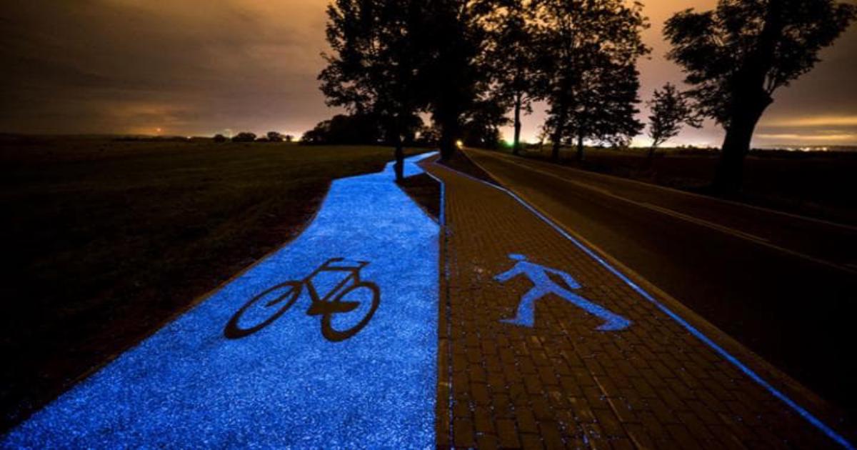 На севере Польши, возле городка Лидзбарк-Варминьски, появилась необычная велодорожка: в темноте она светится приятным голубоватым светом. Для ее создания использовался асфальт с примесью синтетических «люминофоров», способных абсорбировать солнечный свет. «Заряженная» солнцем дорожка может сохранять свечение до 10 часов.