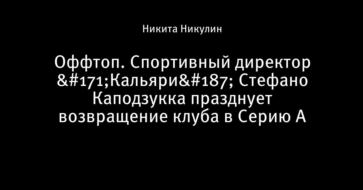20 октября 2016, 18:39 Оффтоп. Спортивный директор «Кальяри» Стефано Каподзукка празднует возвращение клуба в Серию А Автор Никита Никулин Кальяри серия А Италия Стефано Каподзукка
