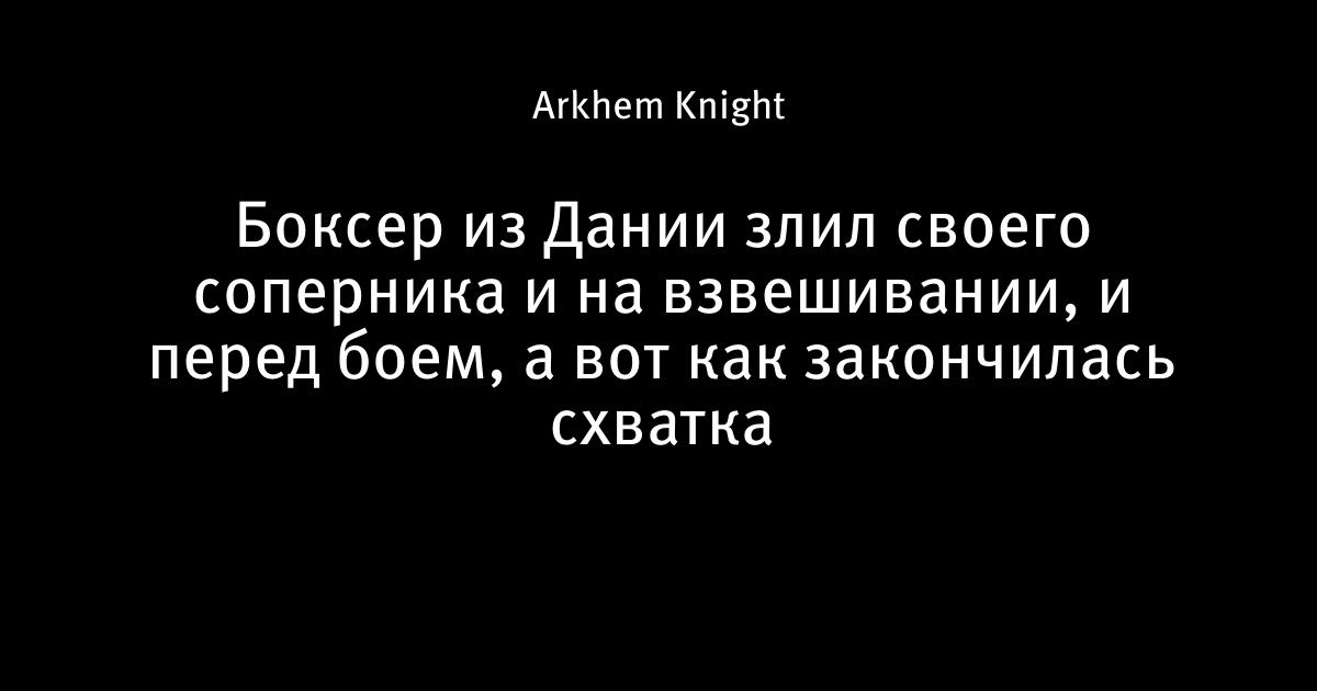 21 октября 2016, 10:01 Боксер из Дании злил своего соперника и на взвешивании, и перед боем, а вот как закончилась схватка Автор Arkhem Knight Этот пост опубликован в блоге на Трибуне Sports.ru. Присоединяйтесь к крупнейшему сообществу спортивных болельщиков! Другие посты блога Лечебница Аркхем бокс