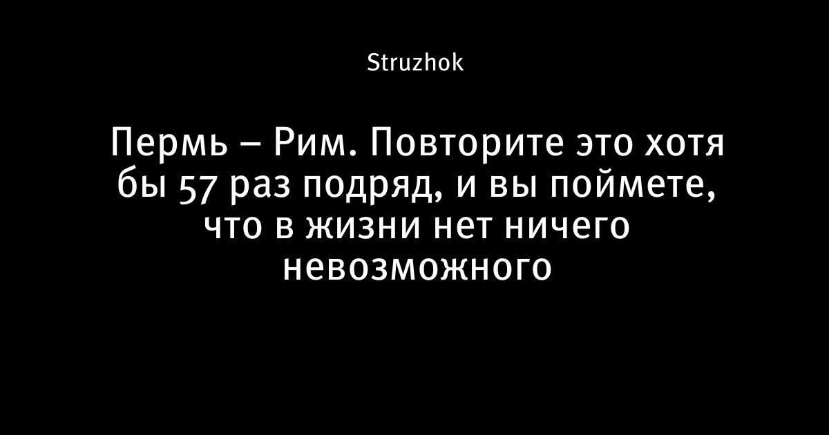 Пермь – Рим. Повторите это хотя бы 57 раз подряд, и вы поймете, что в жизни нет ничего невозможного
