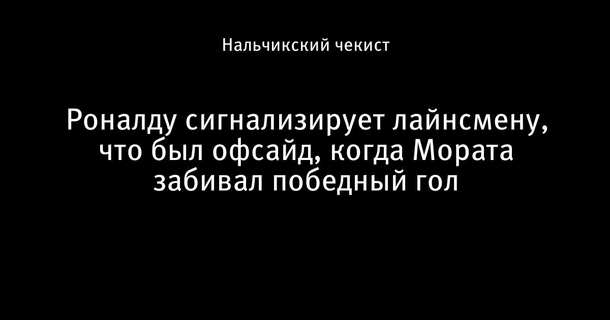 24 октября 2016, 11:57 Роналду сигнализирует лайнсмену, что был офсайд, когда Мората забивал победный гол Автор Нальчикский чекист Этот пост опубликован в блоге на Трибуне Sports.ru. Присоединяйтесь к крупнейшему сообществу спортивных болельщиков! Другие посты блога Телевизор 3.0 Атлетик Криштиану Роналду Альваро Мората