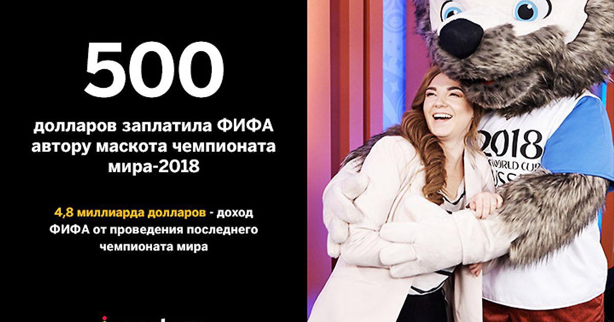 ФИФА выкупила за 500 долларов права на волка Забиваку, который на прошлой неделе был выбран логотипом ЧМ-2018, у российского дизайнера Екатерины Бочаровой. Сумма, в отличие от других цифр ФИФА, впечатлила не всех.