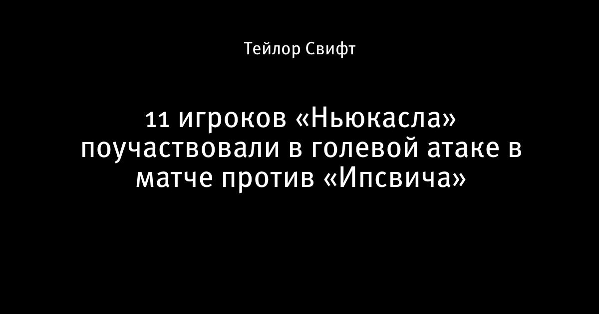 25 октября 2016, 22:30 11 игроков «Ньюкасла» поучаствовали в голевой атаке в матче против «Ипсвича» Автор Тейлор Свифт Этот пост опубликован в блоге на Трибуне Sports.ru. Присоединяйтесь к крупнейшему сообществу спортивных болельщиков! Другие посты блога Тейлор Свифт чемпионшип Ипсвич Ньюкасл