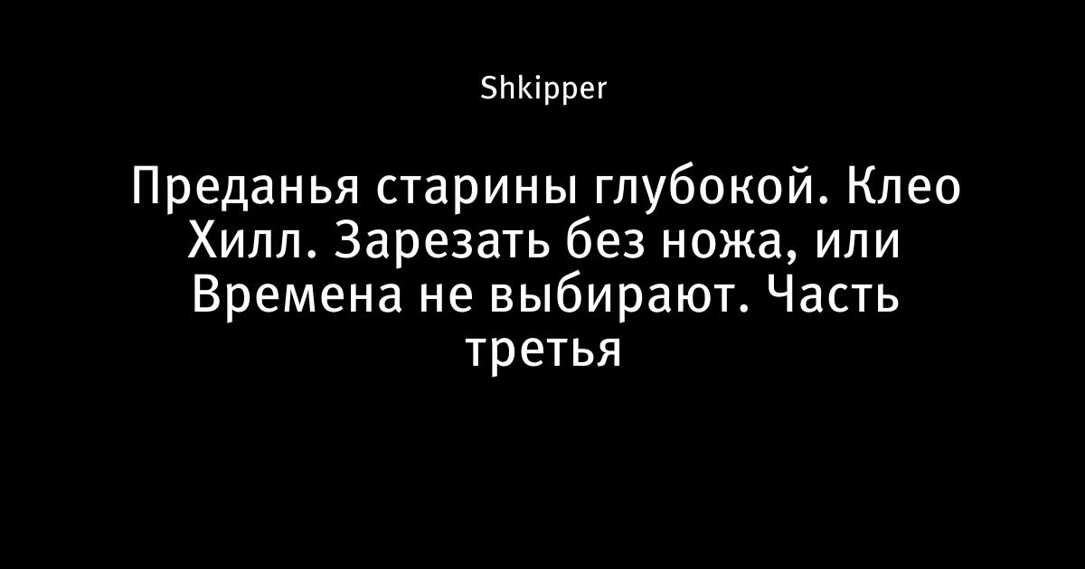 Преданья старины глубокой. Клео Хилл. Зарезать без ножа, или Времена не выбирают. Часть третья