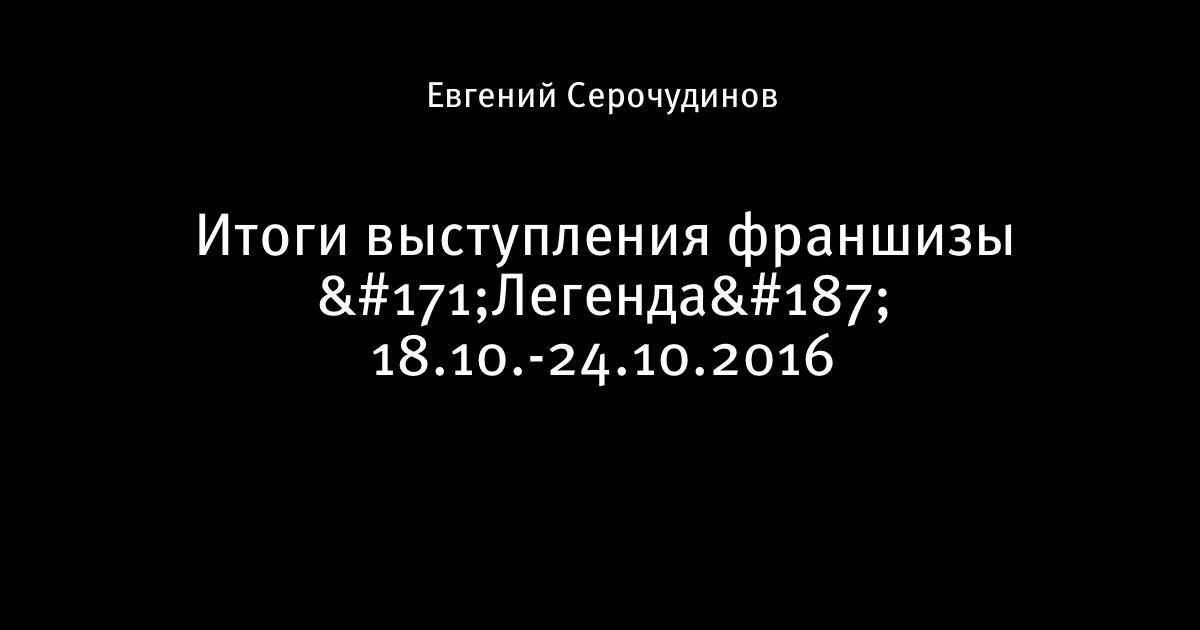 Итоги выступления франшизы «Легенда» 18.10.-24.10.2016