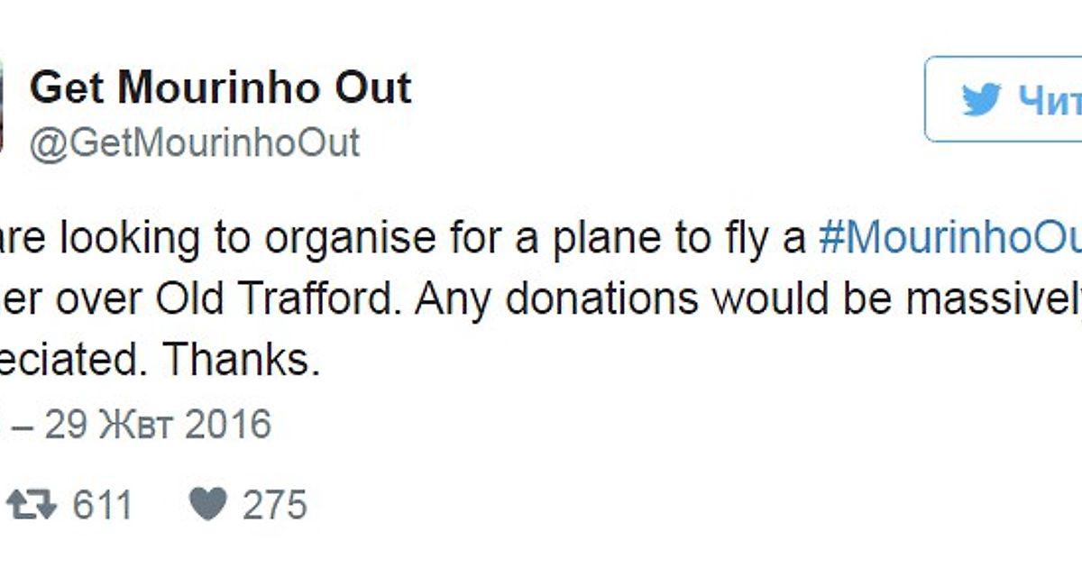 В Твиттере приобретает популярность хэштег MourinhoOut. Под руководством Жозе МЮ за 10 туров АПЛ набрал еще меньше очков (15), чем при Луи ван Гале (22) или Дэвиде Мойесе (17).