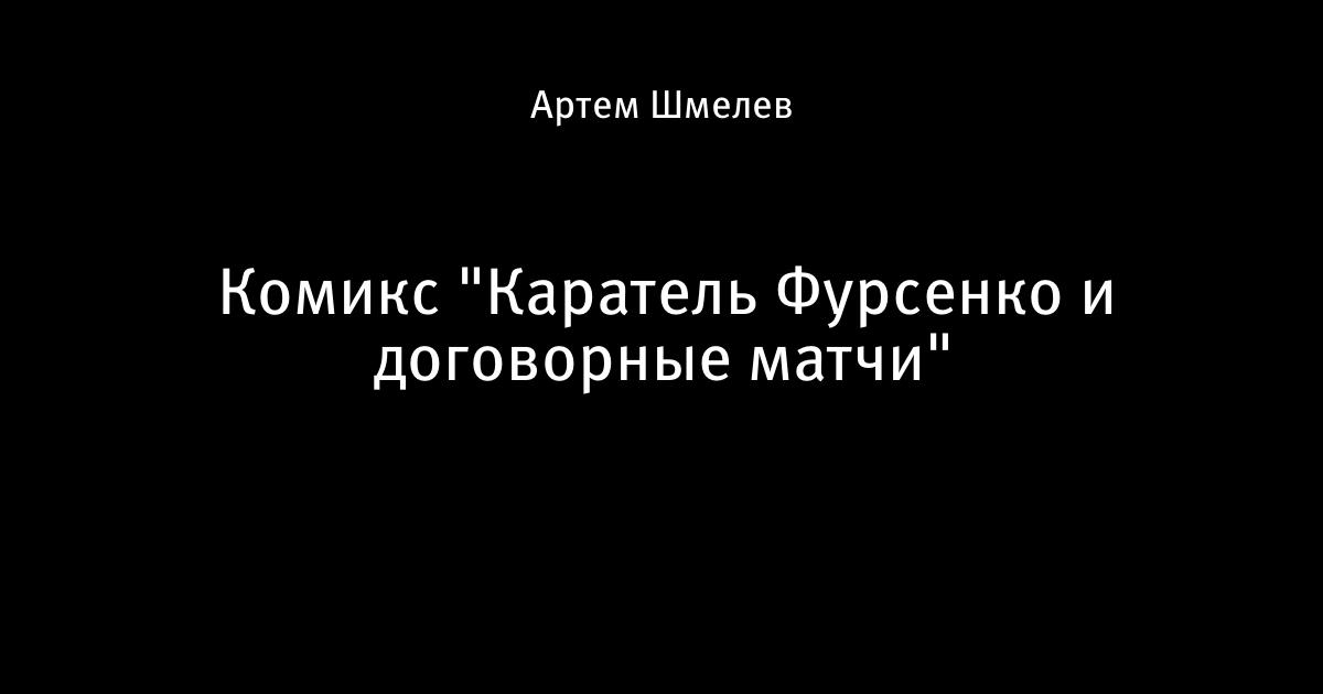 4 сентября 2010, 18:17 Комикс "Каратель Фурсенко и договорные матчи" Сегодня вы прочитаете комикс про Сергея Фурсенко. ОСТОРОЖНО! В комиксе присутствует насилие и слово "договорняк". Приятного чтения и просмотра. Загружаю... Загружаю... Загружаю... Автор Артем Шмелев