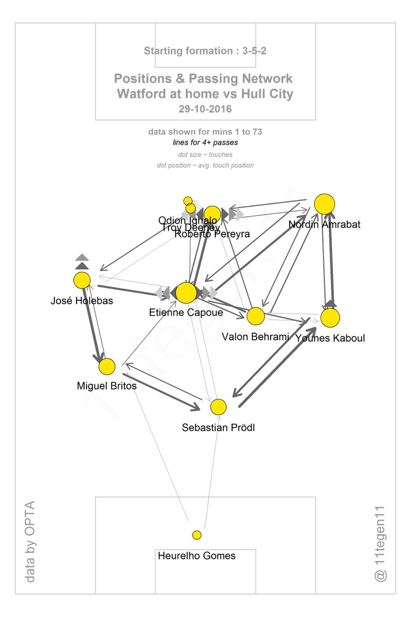 Из 18 моментов «Уотфорда» 8 были созданы с этого края (плюс автогол, не учтенный в моментах), а Амрабат сделал 12 навесов с игры, что в два раза больше, чем любой другой игрок в туре. «Команда искала меня и могла убедиться в том, насколько я могу быть полезен. Мы можем строить игру подобным образом чаще, потому что иногда увлекаемся прямолинейной игрой на Троя, просто потому что он мощен и доставить мяч в его направлении нетрудно», – признался Амрабат.