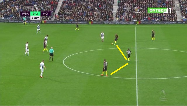 Вдобавок использование концепции ложных фулбеков маскировало известные минусы Фернандо при атаке – он не умеет создавать ширину атаки на таком уровне, как классические фланговые защитники. В данном случае на краях соперника растягивали Нолито и Стерлинг, а Фернандо спокойно чувствовал себя в середине поля.