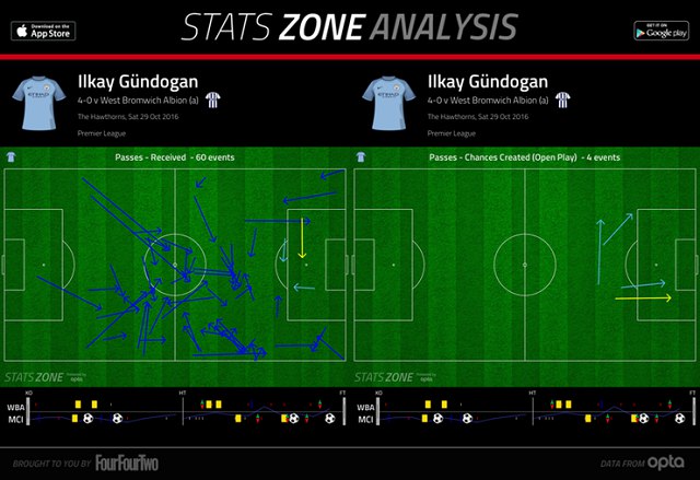 Крис Брант в центре поля. После матча Гвардиола похвалил Пулиса за перестановку в перерыве, сказав, что этот ход показывает, насколько трудна АПЛ. В первом тайме «Вест Бром» играл 4-3-3 с Брантом на фланге, и «Сити» спокойно выводил мяч из обороны и создавал моменты, имея возможность вести к перерыву крупнее. На второй тайм «дрозды» вышли в схеме 4-4-1-1 с Шадли, который практически персонально играл с Фернандиньо – хозяева включили прессинг и прилично затруднили «Сити» построение атаки. После замен Пулиса Эванс ушел в центр обороны (его выход в опорной зоне – из-за дисквалификации Якоба – не отмечаем отдельно, поскольку Пулис уже практиковал такие вещи в прошлом сезоне), а Брант образовал связку в центре поля с Моррисоном. Сам по себе эксперимент вряд ли можно признать удачным – «Сити» забил два гола из центральной зоны во втором тайме. Однако, сама идея Пулиса со сменой схемы во втором тайме и большим давлением на Фернандиньо заслуживает добрых слов.