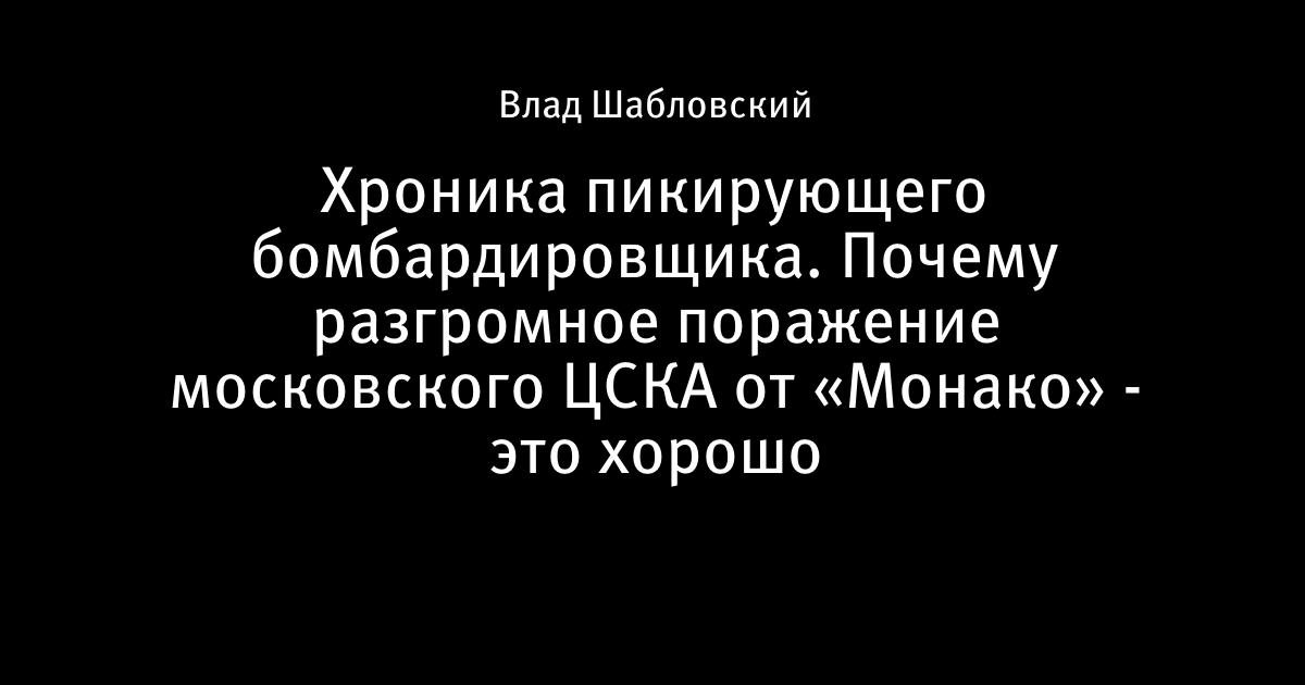 Хроника пикирующего бомбардировщика. Почему разгромное поражение московского ЦСКА от «Монако» - это хорошо
