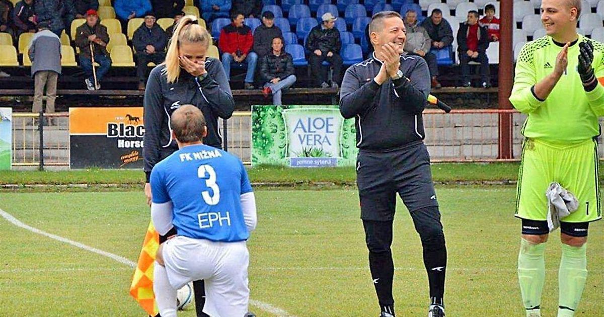 Футболист клуба «Нижна» Любомир Важечка стал главным героем во время матча с «Татраном». Нет, дело не в голах, не в праздновании и даже не в количестве голевых передач. на глазах партнеров он встал на колено и сделал предложение ЛАЙНСМЕНУ!