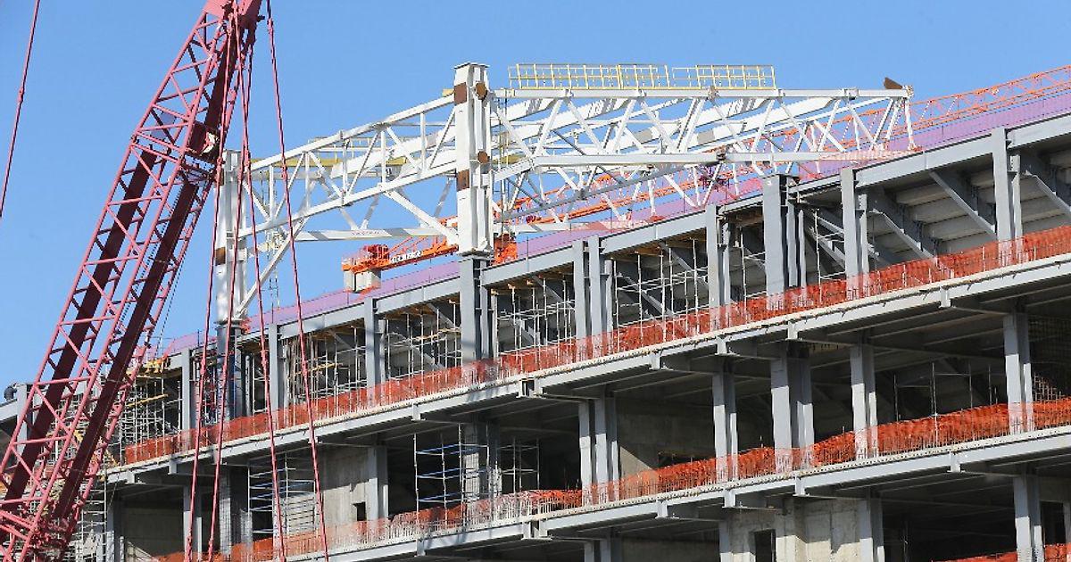 Должно быть установлено 17 секций кровли, сейчас до конца смонтирована одна. Работа ведется постоянно. Также Саркисов отметил, что строительная отрасль Калининградской области с успехом справляется с поступающими заказами для строящегося стадиона в городе. Все необходимое поступает вовремя и без перебоев: «Наша промышленность продемонстрировала готовность к серьёзным задачам. Слаженная работа с генподрядчиком будет продолжена. Наша промышленность выпустила сюда до 70% свай. Задумайтесь, на стадионе нет бетонного узла!»