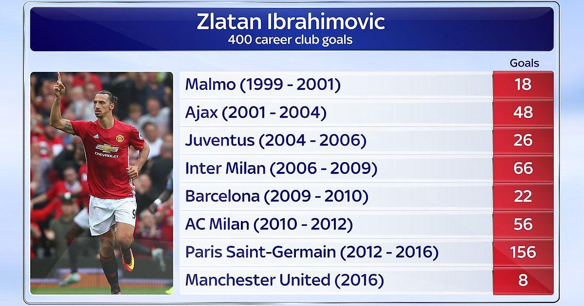 На 21-й минуте матча Златан забил 25.000-й гол в истории АПЛ, а на 33-й - оформил 400-й гол в карьере