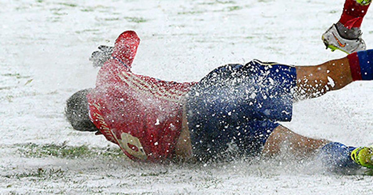 «Томь» и «Спартак» вышли на поле при температуре «минус 13». При этом на поле осталась белая разметка, а играть командам пришлось белым мячом.