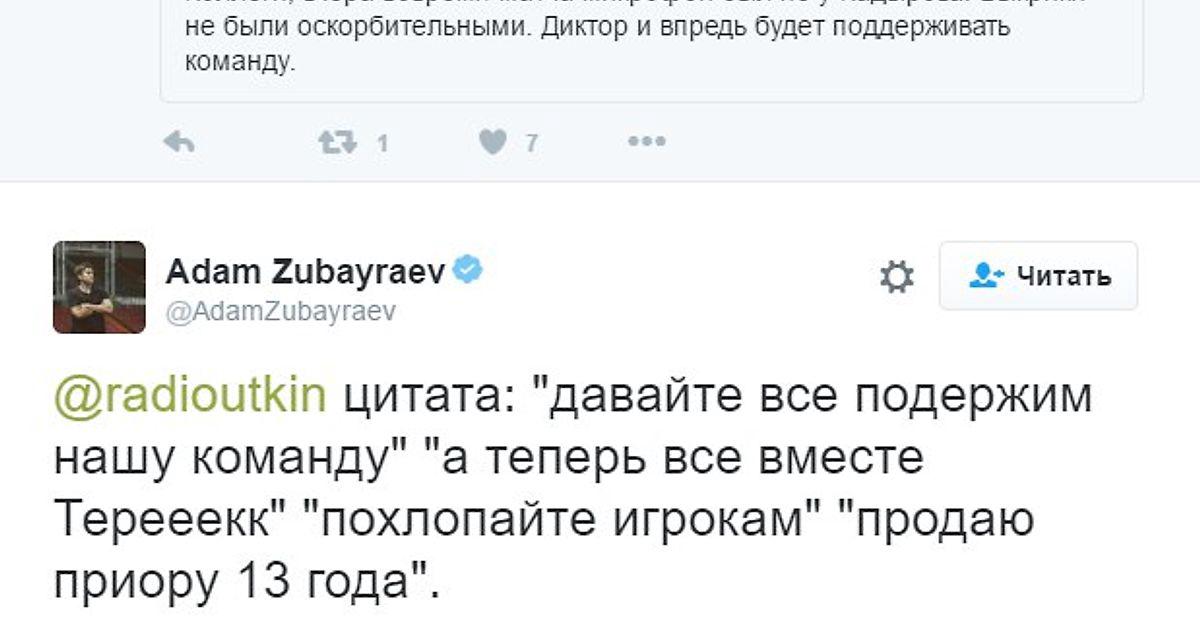 А по мне даже лучше слушать что кричат на трибунах, чем слушать балаберду комментаторов о судейских ошибках. Орлова не было поэтому коментировали птенцы Черданцева. Отрывок из их коментов: ...столкнулись два 21 номера- два очка. Это чудо комментаторской мысли. Тина за базаром надо следить.