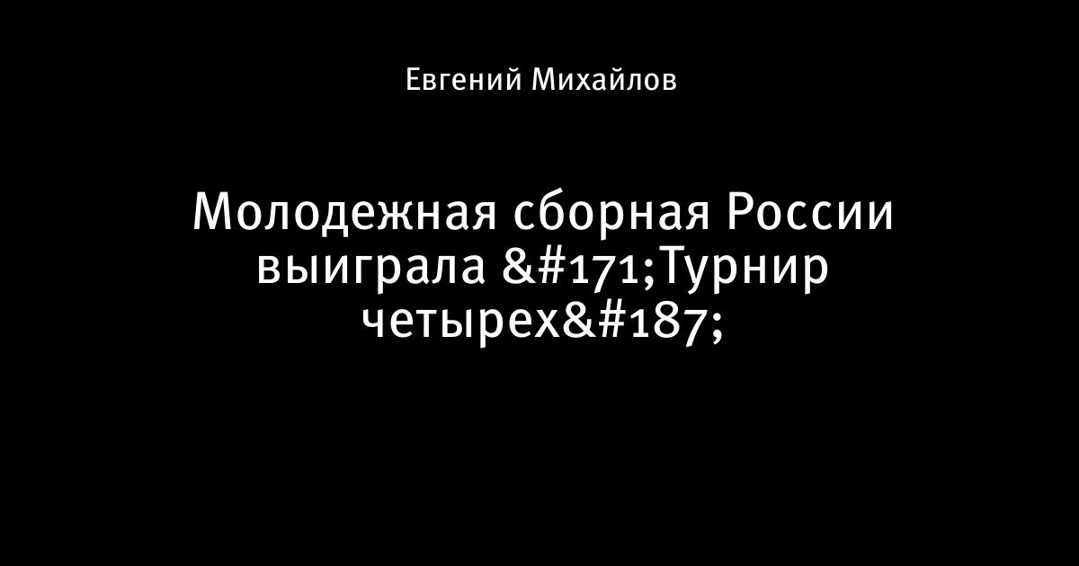 Молодежная сборная России обыграв Швецию 4:2, Чехию 6:2, Финляндию 2:1 (бул), стала победителем международного «Турнира четырех наций».