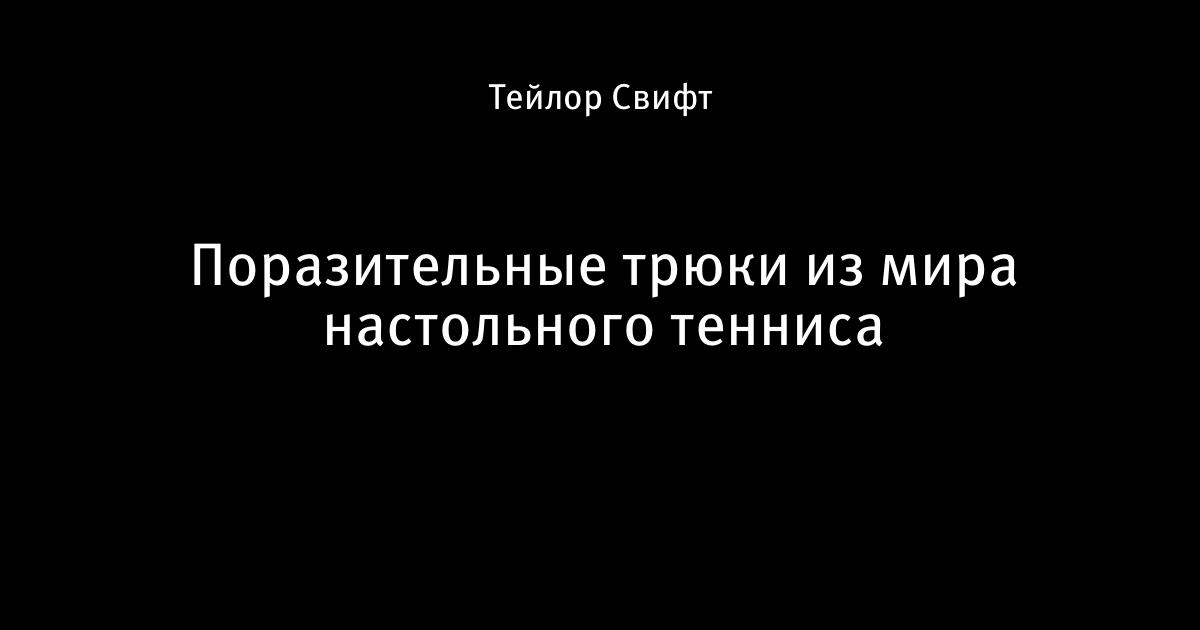 15 ноября 2016, 00:01 Поразительные трюки из мира настольного тенниса Не только китайцы горшки обжигают. Автор Тейлор Свифт Этот пост опубликован в блоге на Трибуне Sports.ru. Присоединяйтесь к крупнейшему сообществу спортивных болельщиков! Другие посты блога Тейлор Свифт