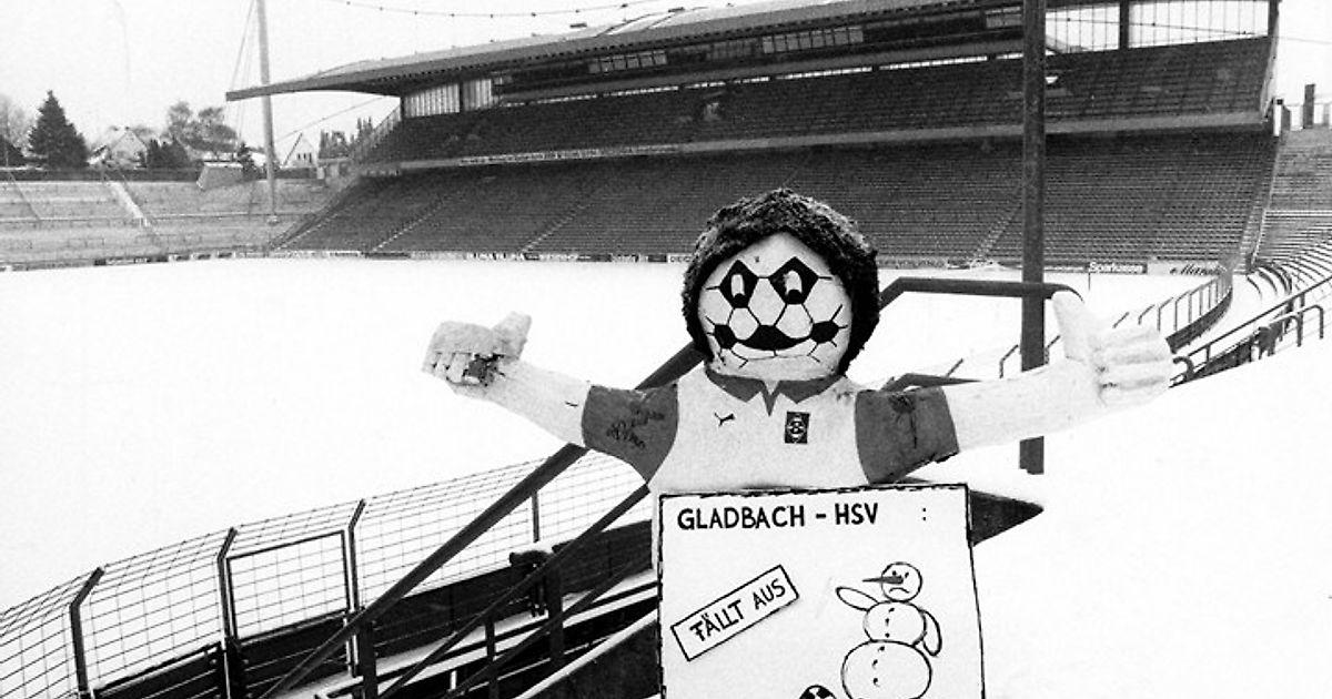 1985 год, Менхенгладбах. Маскот «Боруссии» предупреждает, что матч с «Гамбургом» отменен.