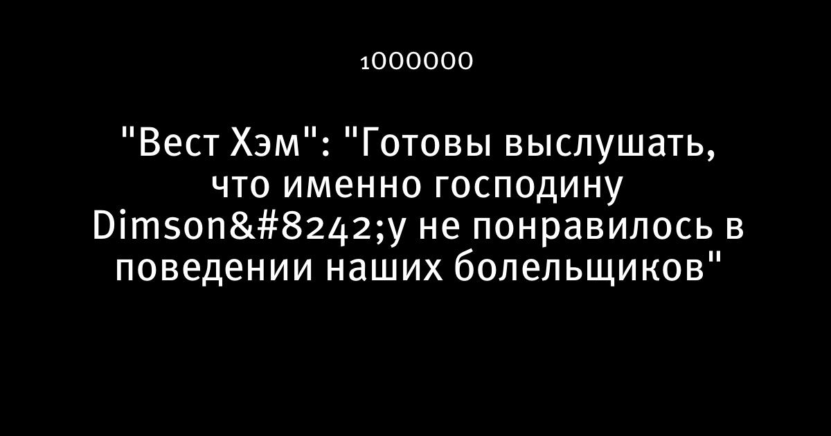 "Вест Хэм": "Готовы выслушать, что именно господину Dimson′у не понравилось в поведении наших болельщиков"