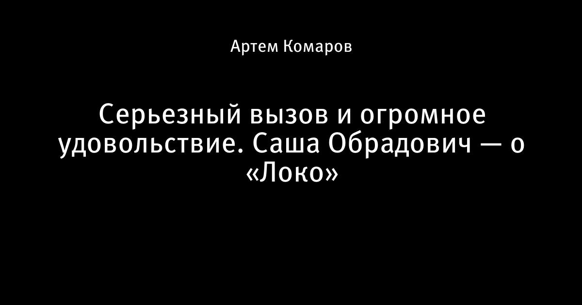 Серьезный вызов и огромное удовольствие. Саша Обрадович — о «Локо»