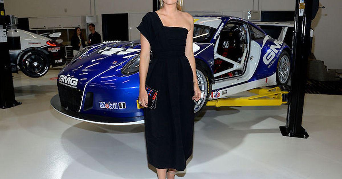 Шарапова в платье Preen посетила открытие Porsche Experience Center в Лос-Анджелесе с другим послом марки актером Патриком Демпси.