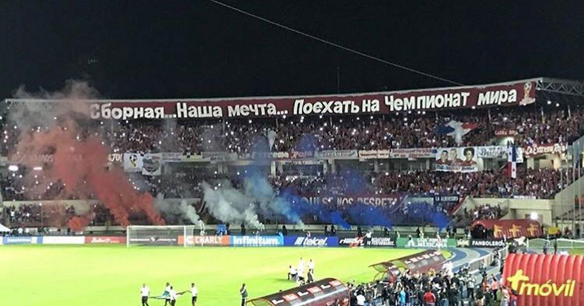 16 ноября 2016, 23:07 Баннер на русском языке с матча Панамы и Мексики Автор Александр Фадин Сборная Мексики по футболу Сборная Панамы по футболу