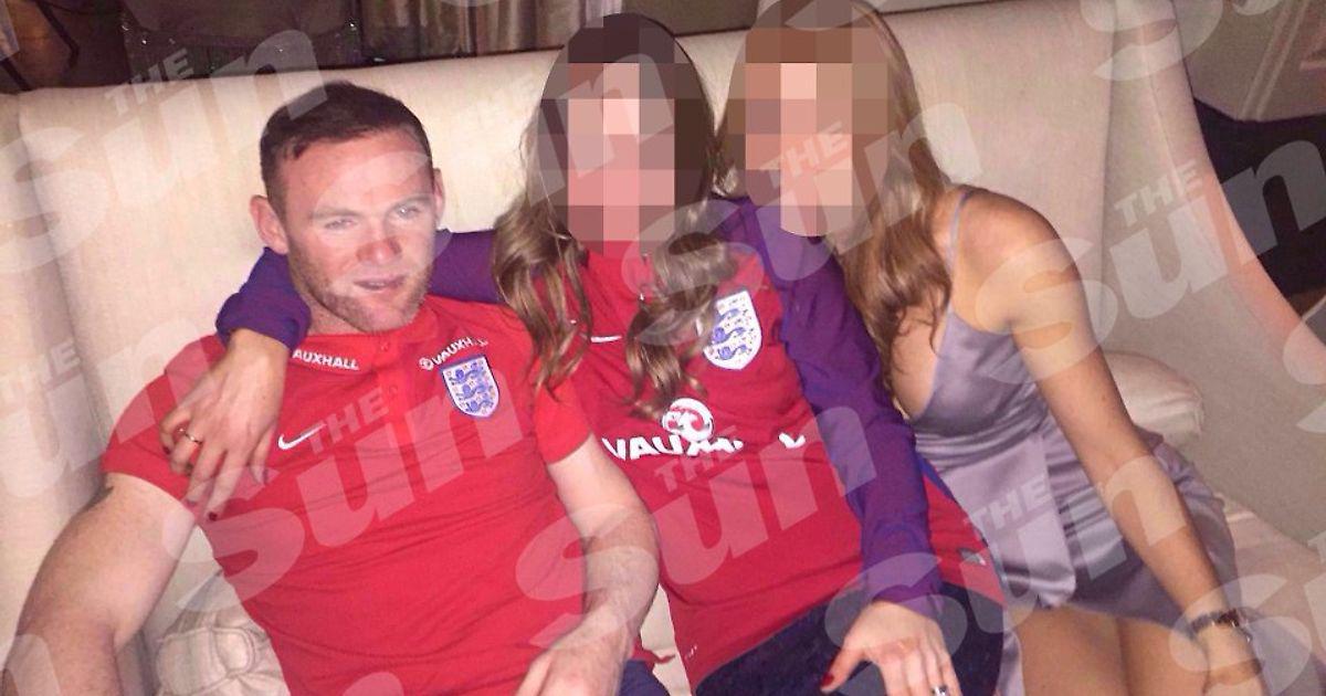 На одном из них Уэйн, которому уже хорошо, сфотографирован с двумя дамами, одна из которых в очень откровенном наряде.