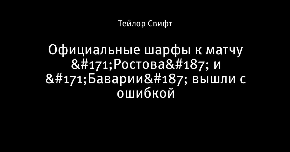 18 ноября 2016, 10:47 Официальные шарфы к матчу «Ростова» и «Баварии» вышли с ошибкой Фейл заметили, шарфы изъяли из продажи. Автор Тейлор Свифт Этот пост опубликован в блоге на Трибуне Sports.ru. Присоединяйтесь к крупнейшему сообществу спортивных болельщиков! Другие посты блога Телевизор 3.0 Ростов Лига чемпионов УЕФА