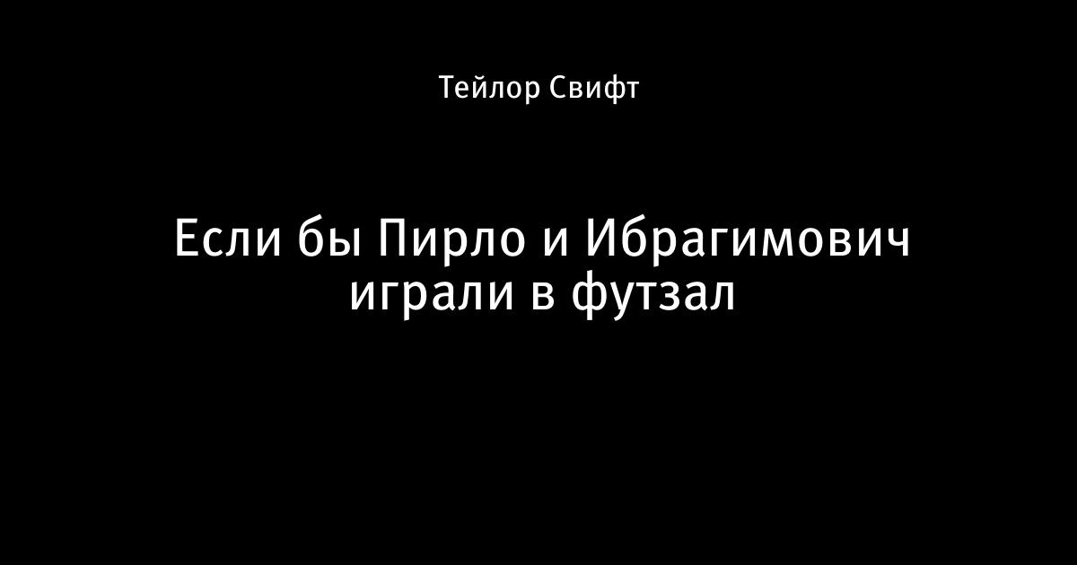 19 ноября 2016, 14:50 Если бы Пирло и Ибрагимович играли в футзал Автор Тейлор Свифт Этот пост опубликован в блоге на Трибуне Sports.ru. Присоединяйтесь к крупнейшему сообществу спортивных болельщиков! Другие посты блога Тейлор Свифт