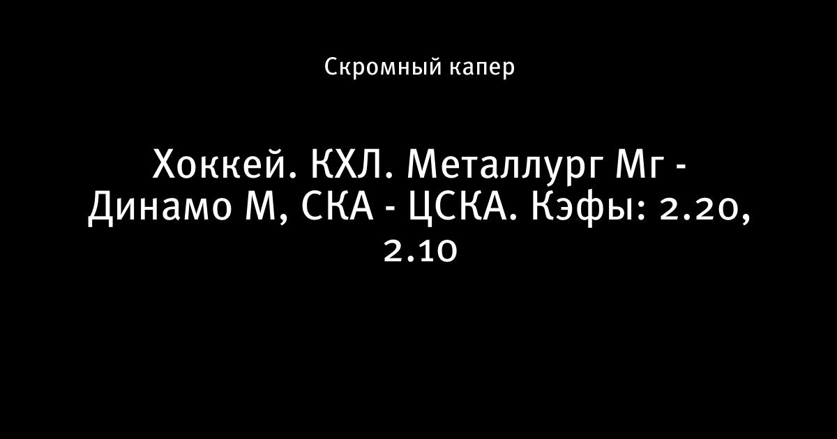 Хоккей. КХЛ. Металлург Мг - Динамо М, СКА - ЦСКА. Кэфы: 2.20, 2.10