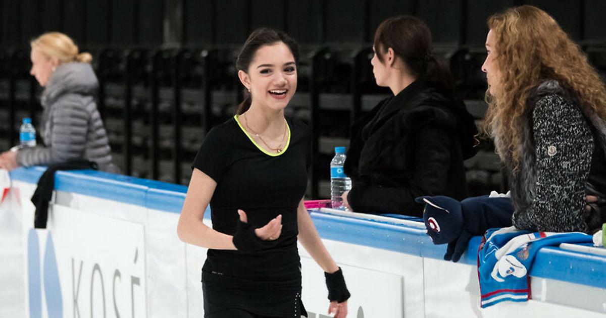 В 18.45, точно по расписанию, Женя вместе с другими участницами первой разминки, вышла на лед.