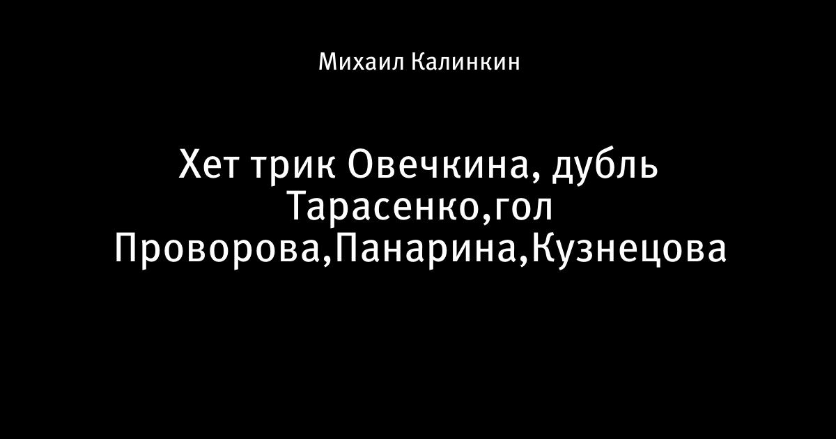 24 ноября 2016, 08:59 Хет трик Овечкина, дубль Тарасенко,гол Проворова,Панарина,Кузнецова Автор Михаил Калинкин Этот пост опубликован в блоге на Трибуне Sports.ru. Присоединяйтесь к крупнейшему сообществу спортивных болельщиков! Другие посты блога Russian Legion Артемий Панарин Евгений Кузнецов Владимир Тарасенко Александр Овечкин Артем Анисимов Иван Проворов