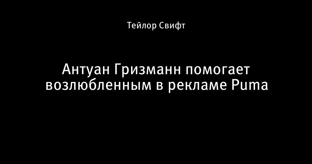24 ноября 2016, 22:17 Антуан Гризманн помогает возлюбленным в рекламе Puma Автор Тейлор Свифт Этот пост опубликован в блоге на Трибуне Sports.ru. Присоединяйтесь к крупнейшему сообществу спортивных болельщиков! Другие посты блога Тейлор Свифт Антуан Гризманн Реклама