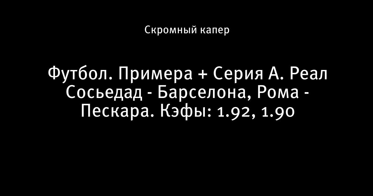 Футбол. Примера + Серия А. Реал Сосьедад - Барселона, Рома - Пескара. Кэфы: 1.92, 1.90