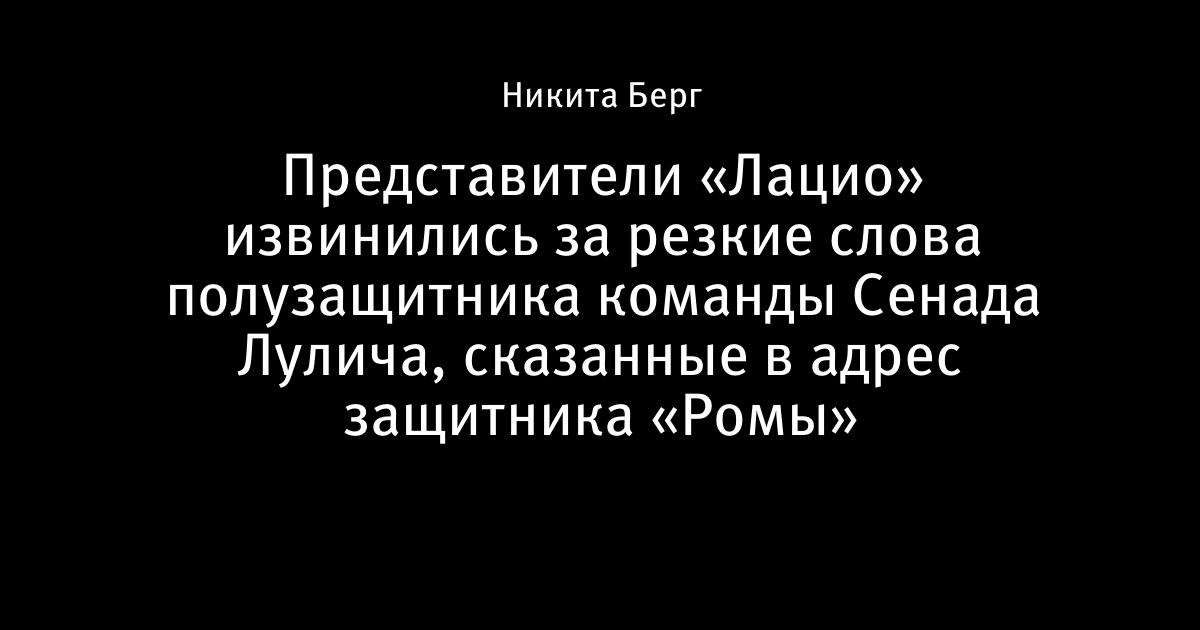 Представители «Лацио» извинились за резкие слова полузащитника команды Сенада Лулича, сказанные в адрес защитника «Ромы»