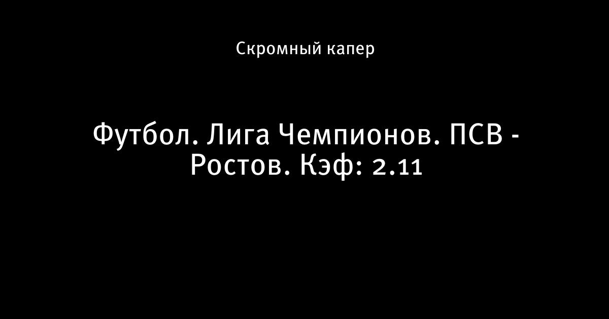 Футбол. Лига Чемпионов. ПСВ - Ростов. Кэф: 2.11