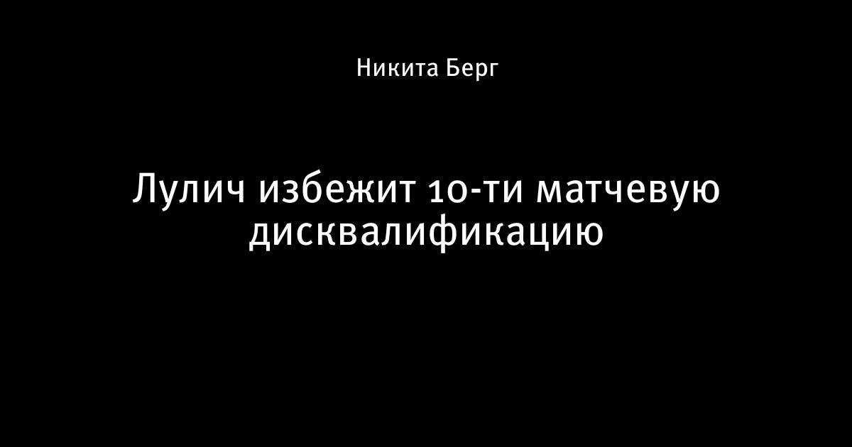 Таким образом, Лулича может ждать дисквалификация максимум на три матча, а не на десять.