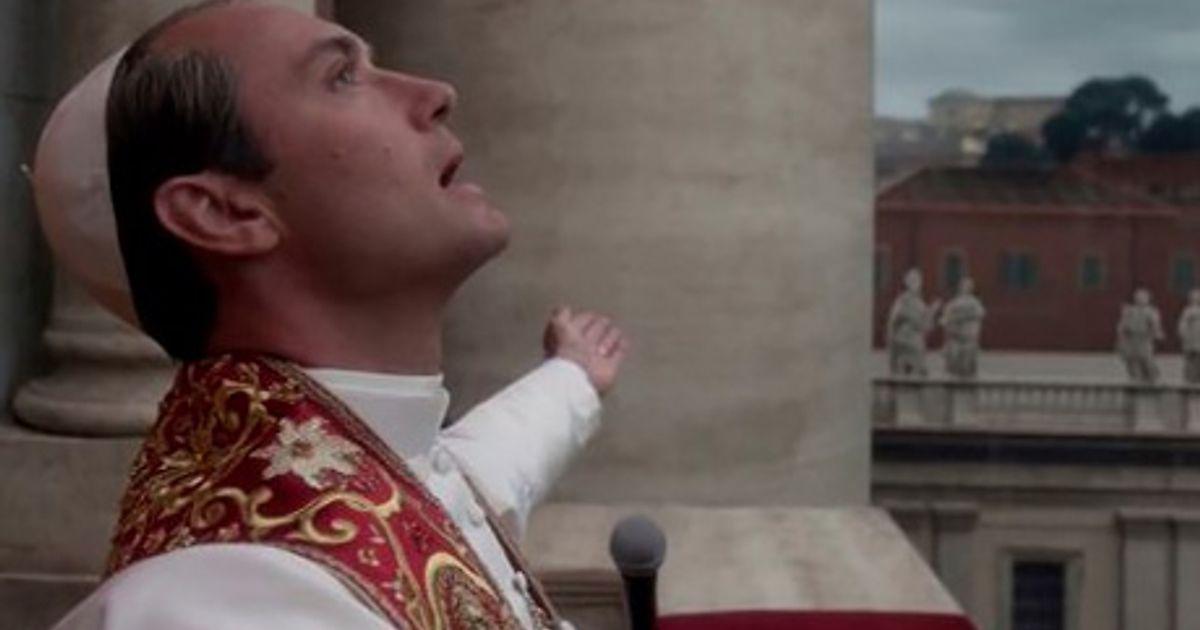 Еще чуть-чуть, и будет футбол. Вместо сериала на десять эпизодов Соррентино снял пять полнометражных трибьютов. Загибайте пальцы. Ангелоподобный Джуд Лоу в белоснежной сутане от Армани (здесь куют хип-хоп) меланхолично бродит по ватиканским садам и галереям, как дьявольски красивый Марчелло Мастрояни бродил в черном костюме в «Восемь с половиной». Это, понятно, Феллини.
