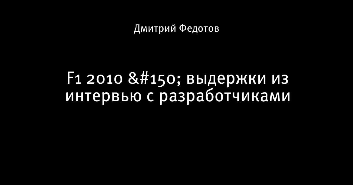 Видимо, я всех замучаю с этой игрой, особенно себя, поскольку у меня с женой идут жаркие споры о покупке нового компьютера (женщины не понимают, что со временем техника превращается в железные дровишки, а потому возникают вопросы, типа, ну зачем тебе третий компьютер?), но сегодня на сайте F1 Fanatic было опубликовано очень интересное интервью с разработчиками F1 2010, мимо которого я просто не мог пройти.