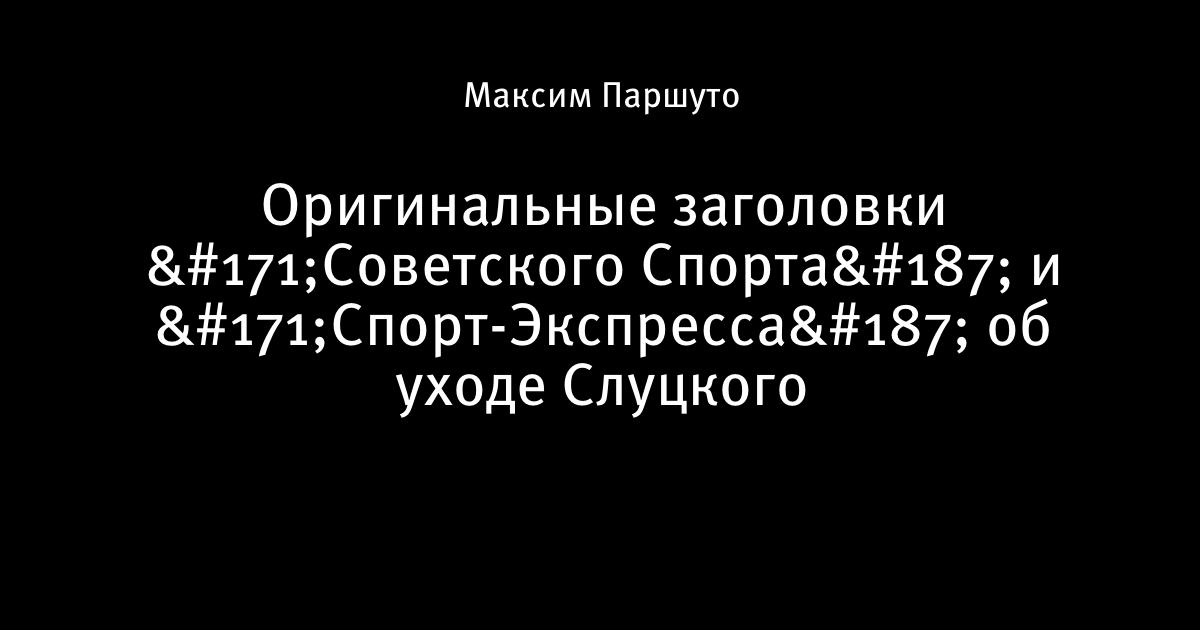 8 декабря 2016, 10:52 Оригинальные заголовки «Советского Спорта» и «Спорт-Экспресса» об уходе Слуцкого Источник Автор Максим Паршуто Этот пост опубликован в блоге на Трибуне Sports.ru. Присоединяйтесь к крупнейшему сообществу спортивных болельщиков! Другие посты блога Вы это видели? Леонид Слуцкий