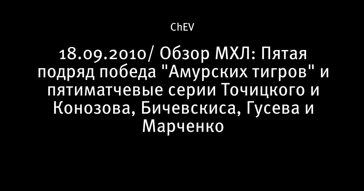 18.09.2010/ Обзор МХЛ: Пятая подряд победа "Амурских тигров" и пятиматчевые серии Точицкого и Конозова, Бичевскиса, Гусева и Марченко