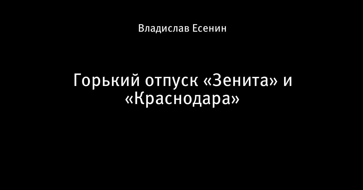 Горький отпуск «Зенита» и «Краснодара»
