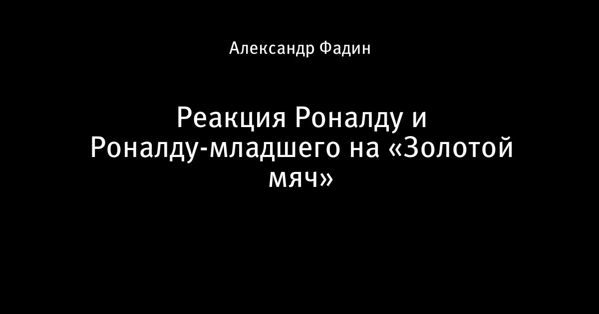 12 декабря 2016, 22:12 Реакция Роналду и Роналду-младшего на «Золотой мяч» Автор Александр Фадин Золотой мяч Криштиану Роналду Реал Мадрид