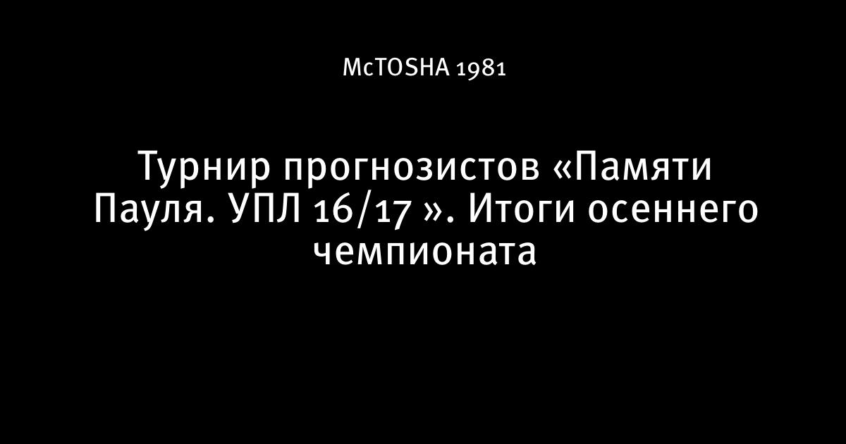 Турнир прогнозистов «Памяти Пауля. УПЛ 16/17 ». Итоги осеннего чемпионата