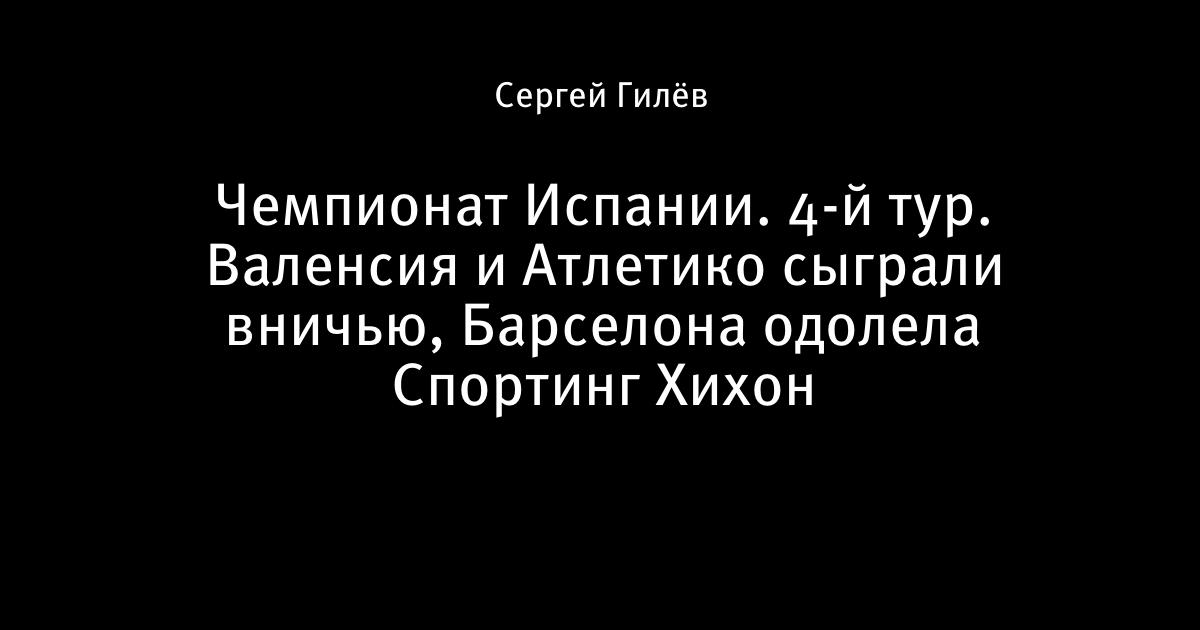 Чемпионат Испании. 4-й тур. Валенсия и Атлетико сыграли вничью, Барселона одолела Спортинг Хихон