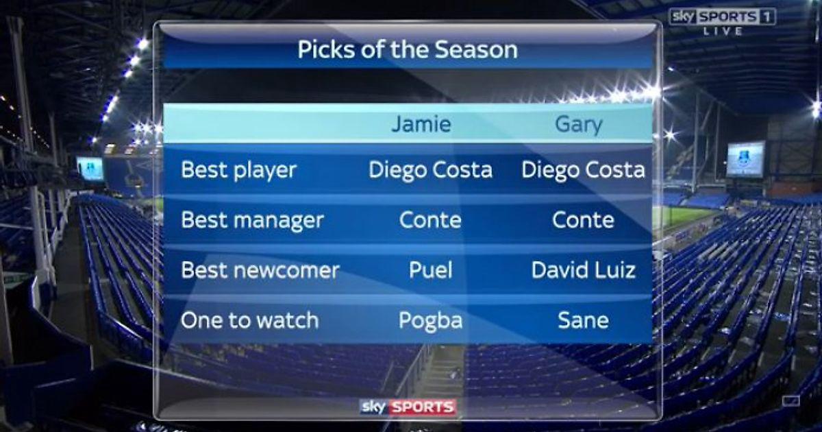 20 декабря 2016, 14:19 Каррагер и Невилл выбрали лучшего игрока, тренера, новичка и любопытного игрока для наблюдения в первой половине сезона Сборная сезона от Гари: Сборная сезона от Джейми: Автор DolJun Этот пост опубликован в блоге на Трибуне Sports.ru. Присоединяйтесь к крупнейшему сообществу спортивных болельщиков! Другие посты блога Вы это видели? премьер-лига Англия Диего Коста Гари Невилл Джейми Каррагер Поль Погба Челси Лерой Сане Антонио Конте Давид Луиз Клод Пюэль