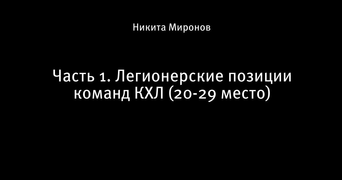 Часть 1. Легионерские позиции команд КХЛ (20-29 место)